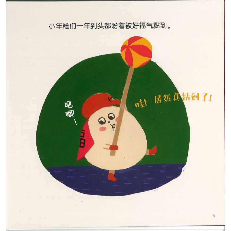 除夕夜,年糕村的小年糕们准备聚在一起举办一场“春节黏黏晚会”,黏上所有的好福气带到新的一年。今年给大家送好运的是“小年糕舞龙团”。不过舞龙团在表演时,却发生了一场意外——大家吧唧吧唧地黏在了一起!哎哟哎哟!这可怎么办?书中还有《黏黏好运歌》,全家一起欢唱歌谣,过个团团圆圆好运年!