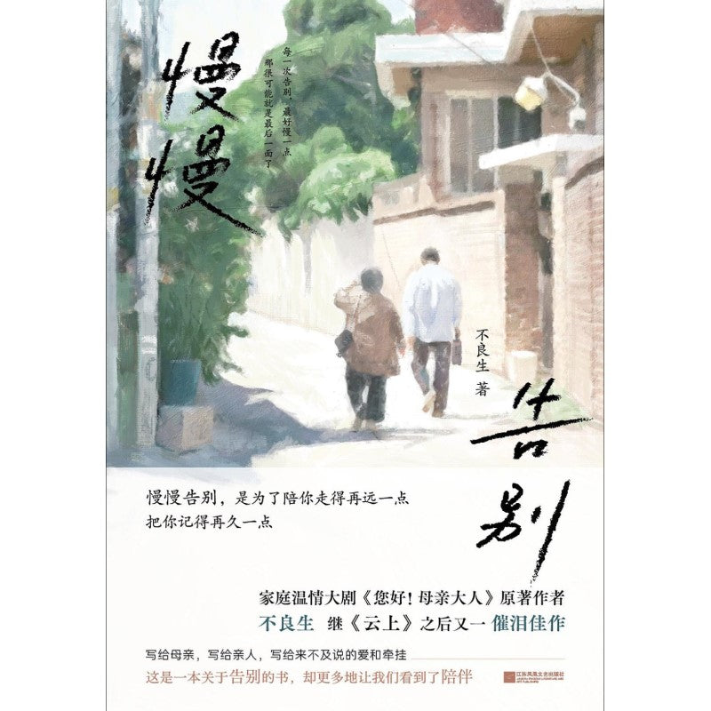 《慢慢告别》这部散文集,是作家不良生沿袭其前一部口碑之作《云上:再见啦!母亲大人》的亲情书写,全书分为上、下篇。在上篇中,重述了母亲的少女时代、青年人生、中年晚景、临终时刻及故去后的余音。她的青春,她的热爱,她的生活,竟在告别之后,才开始重新认识她。在下篇中,回忆了很少提及的父亲,亦以白描手法讲叙了外婆、大姨、大舅、小舅、兄弟等生命里的亲人故事,那份属于家族亲情的淡淡哀愁与喜悦,让我们看见年复一年的平常生活的力量。全书以苏北小镇的一对寻常母子横跨三十年的半生轨迹为脉络,杂揉形形色色的家长里短、世事聚散,呈现烟火人间的欢苦缩影,并全景展现了一幅中国式家庭群像画卷。