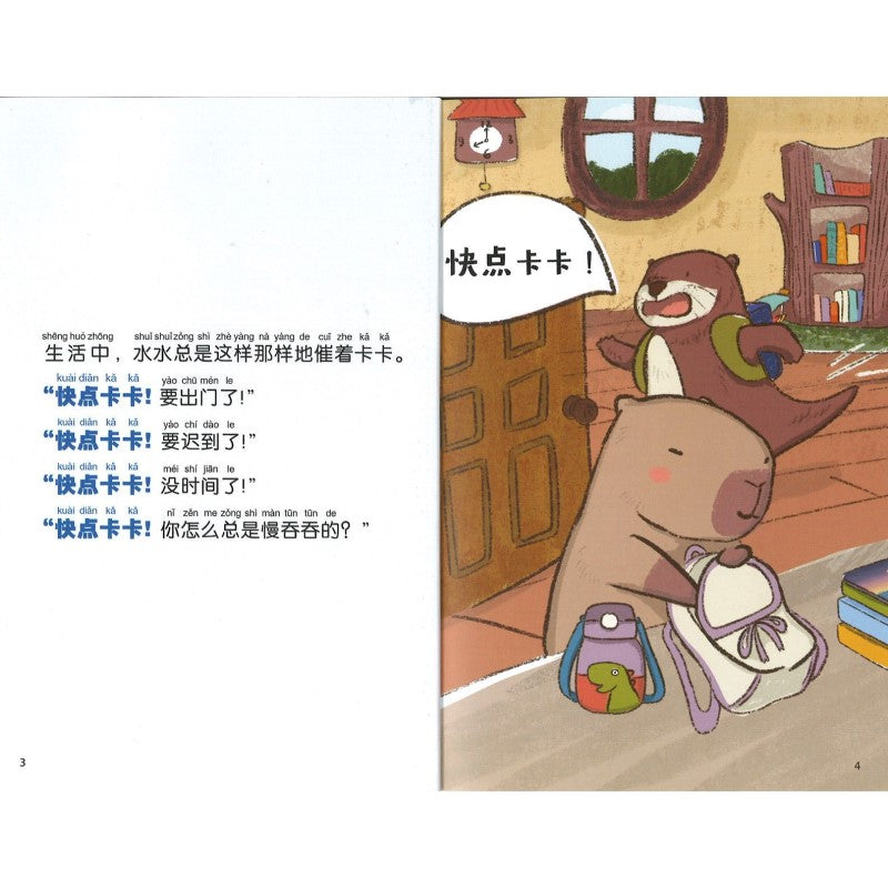 慢性子的水豚卡卡和急性子的水獭水水是最佳搭档,一个总是慢条斯理,一个永远风风火火。当黑熊叔叔的甜品店开张时,两人兴冲冲去帮忙,却因节奏不同闹出无数笑料!